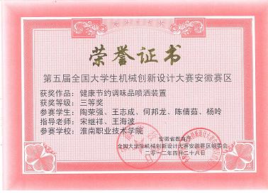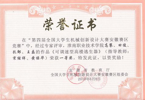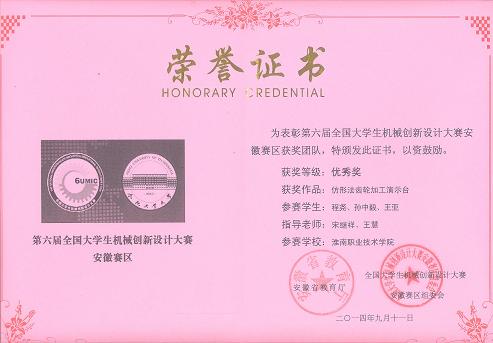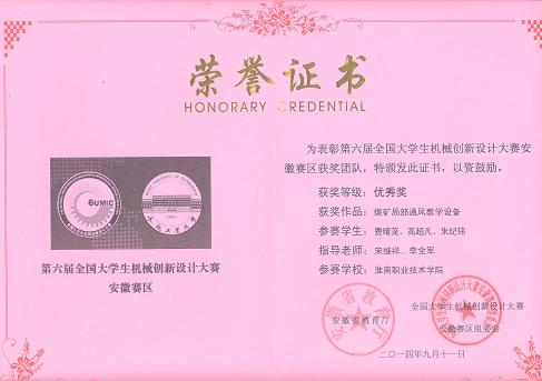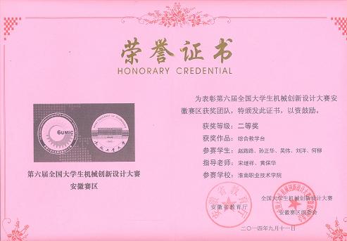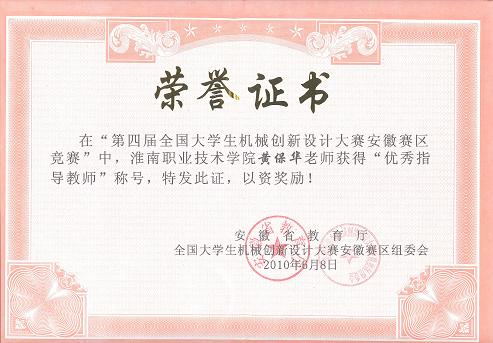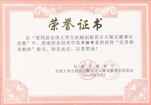 4、在第四届全国大学生机械创新设计大赛安徽区竞赛优秀指导教师;
