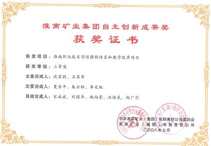 1、获淮南矿业集团自主创新成果三等奖;