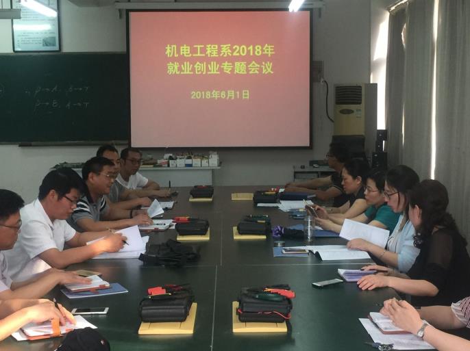 2018年6月1日下午5:00,机电工程系全体教师在S301召开就业创业专题会议。
