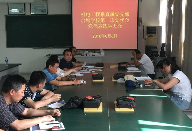 根据学校《关于做好中共淮南职业技术学院第一次代表大会代表选举工作的通知》(淮职党[2018]29号)要求,机电工程系直属党支部6月8日下午,在实训楼301党员活动室召开了学校第一次党代会代表选举会议。会议由系党支部书记马军主持,学校党委工作部戴文涛同志参加了会议。